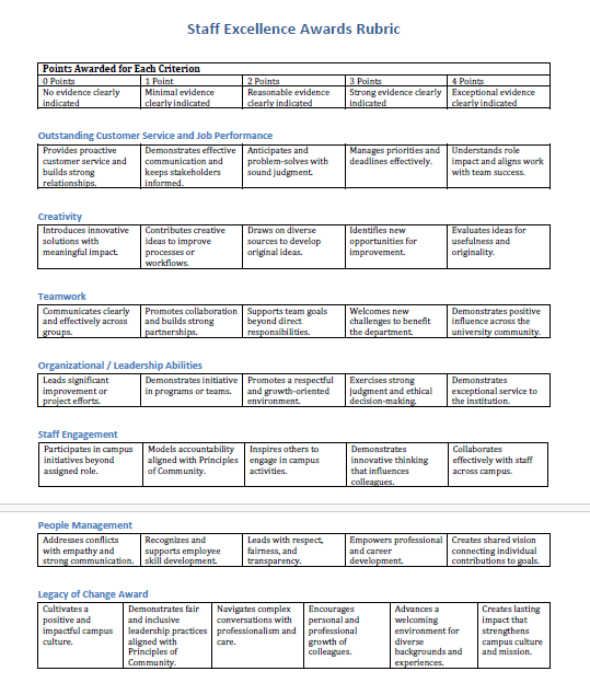 Rubric for each category